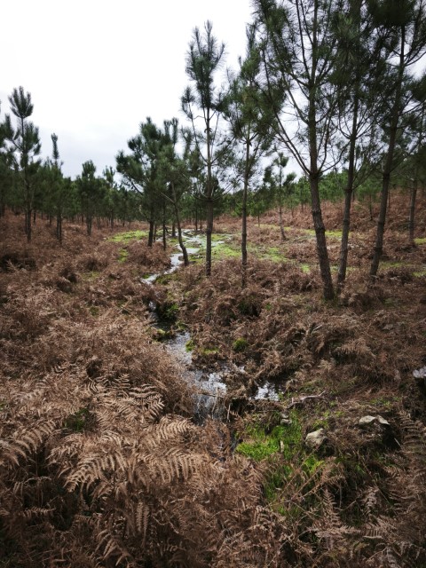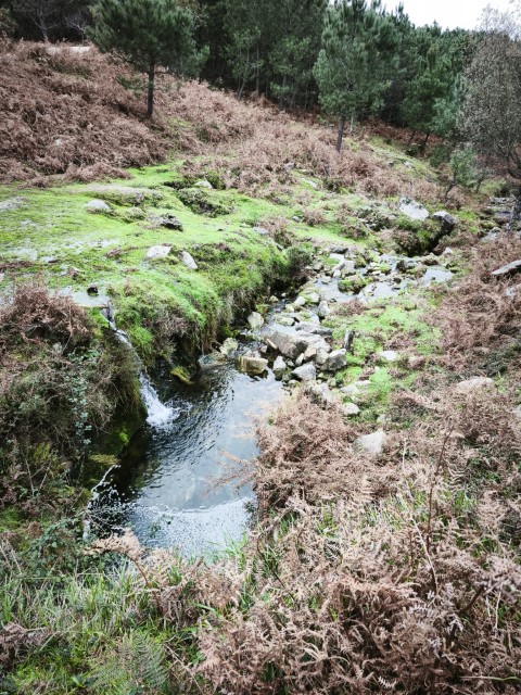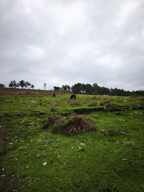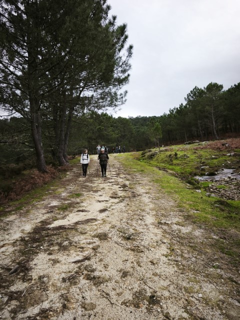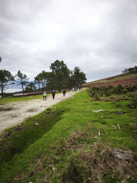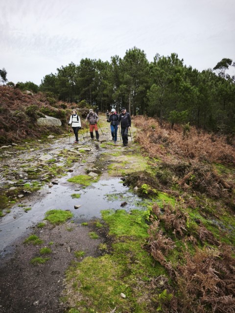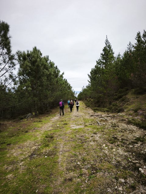 El sendero asciende progresivamente por la Serra da Groba. Se caracteriza por transcurrir a través de una combinación de paisaje forestal (pinos y eucaliptos) y zonas de monte bajo y matorral, típicas de alta montaña, donde los caballos salvajes suelen pastar libremente.