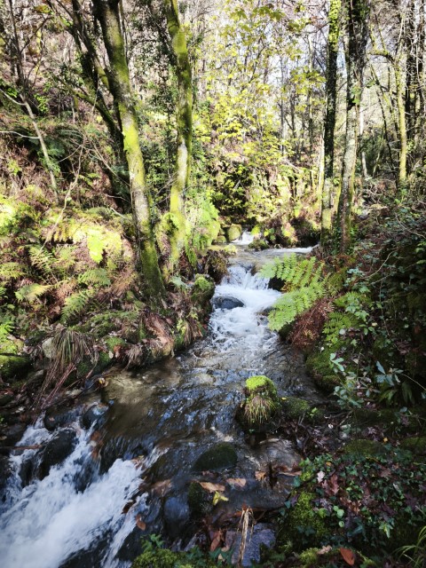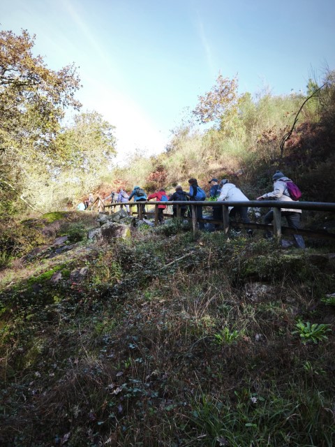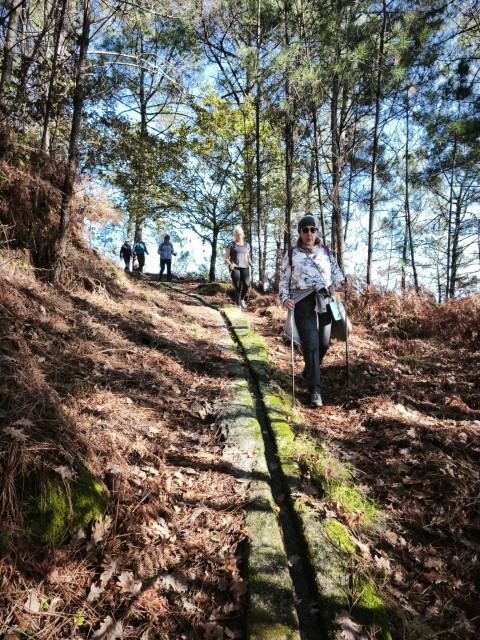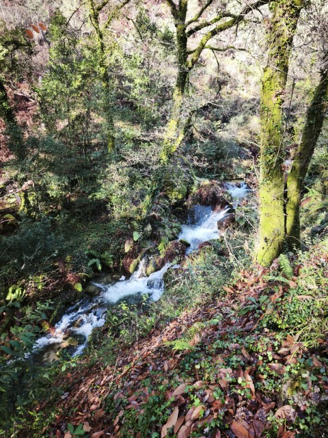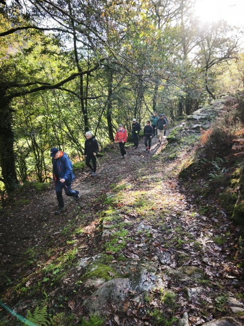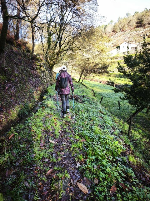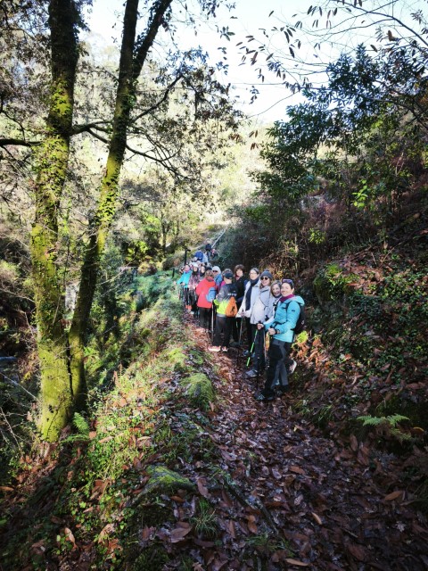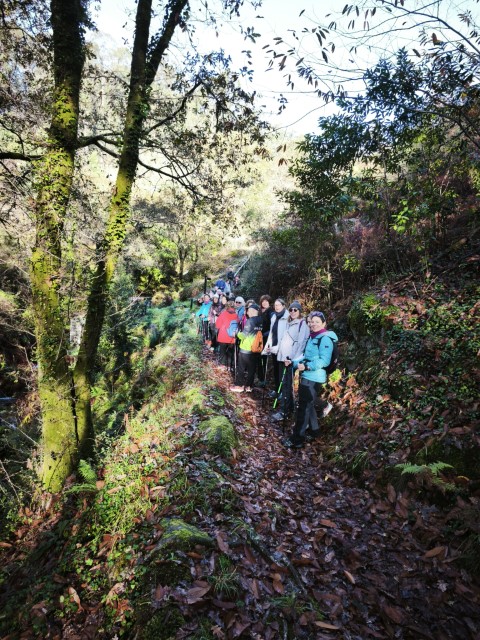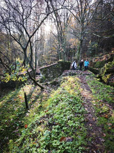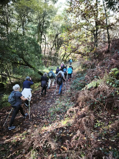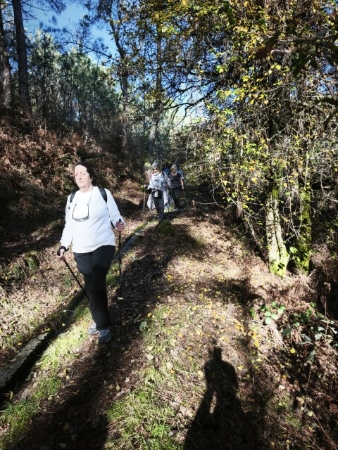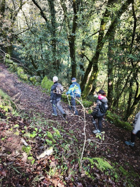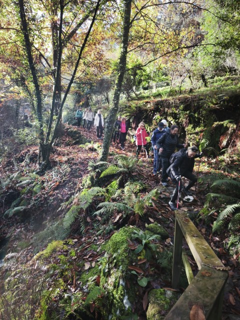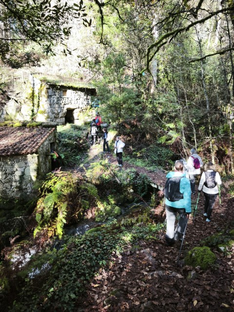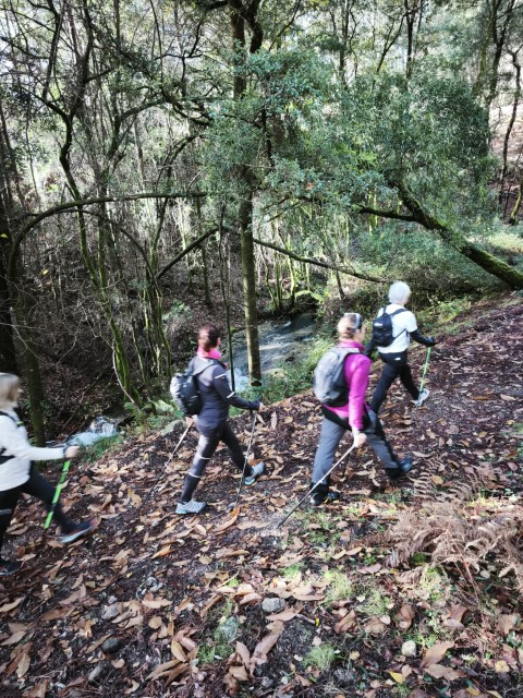 Entramos en la espesura, y la ruta de los Muíños do Tripes nos recibió con el frescor que solo el bosque de ribera puede ofrecer. El aire se llenó del sonido rítmico de nuestros bastones golpeando el terreno, un sonido que se unía al constante murmullo del río Tripes.