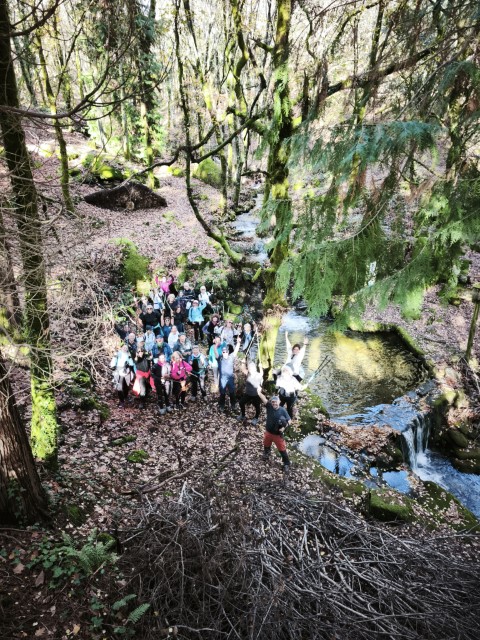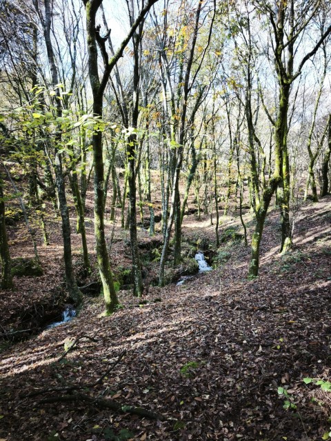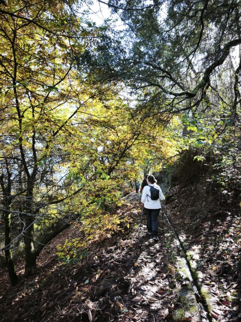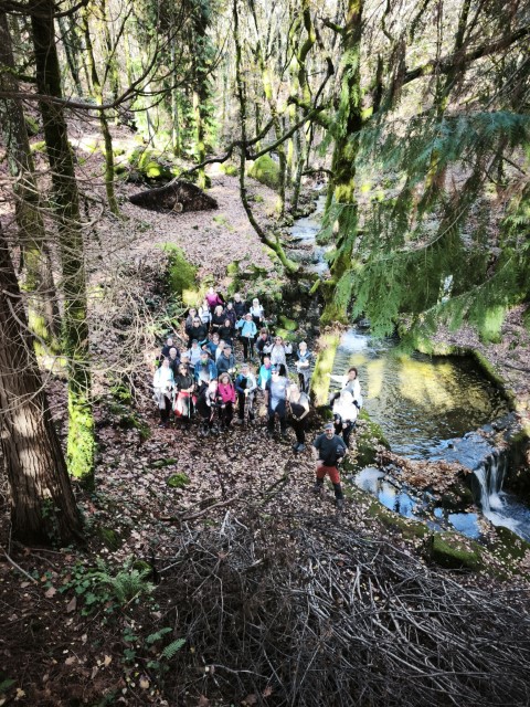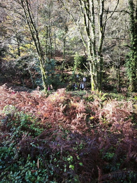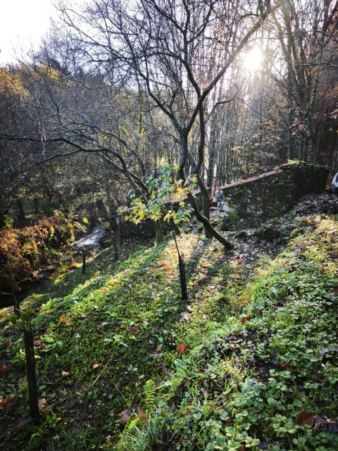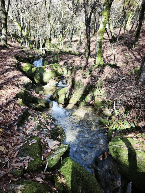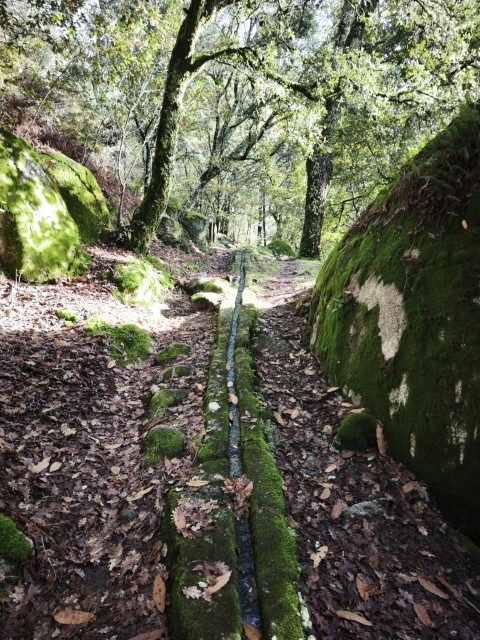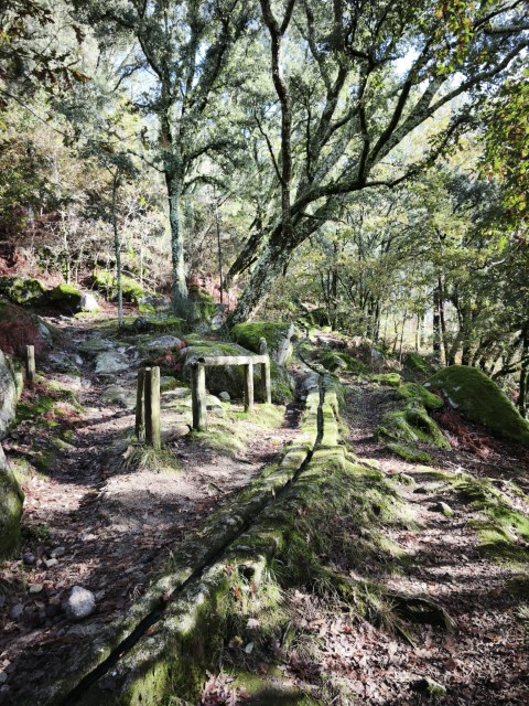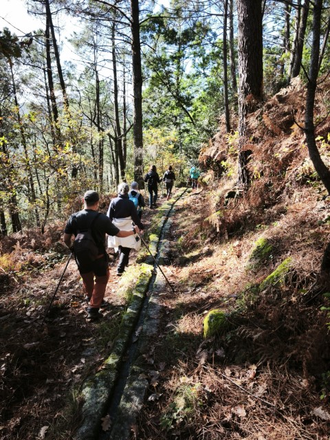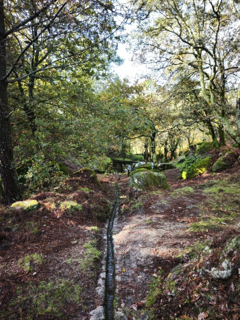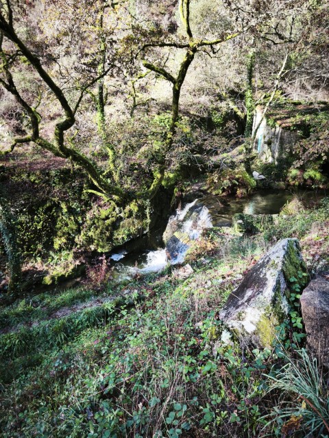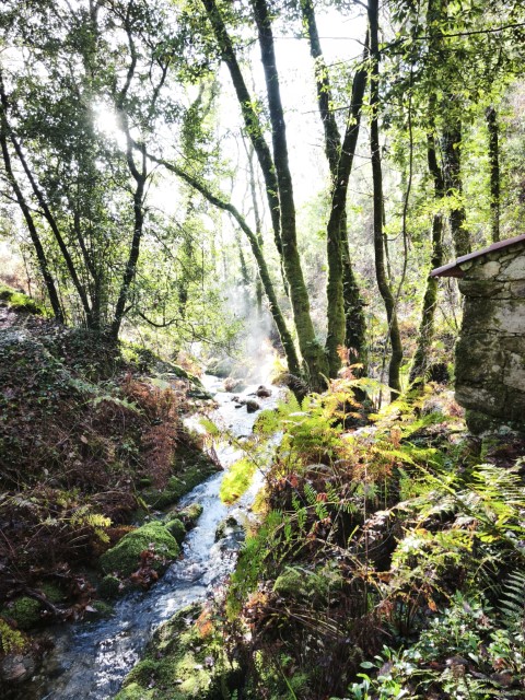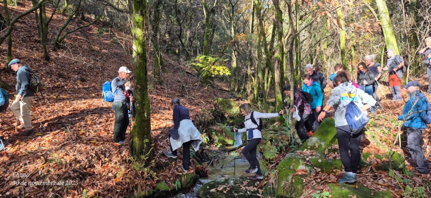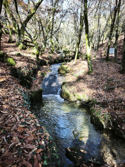 Entramos en la espesura, y la ruta de los Muíños do Tripes nos recibió con el frescor que solo el bosque de ribera puede ofrecer. El aire se llenó del sonido rítmico de nuestros bastones golpeando el terreno, un sonido que se unía al constante murmullo del río Tripes.